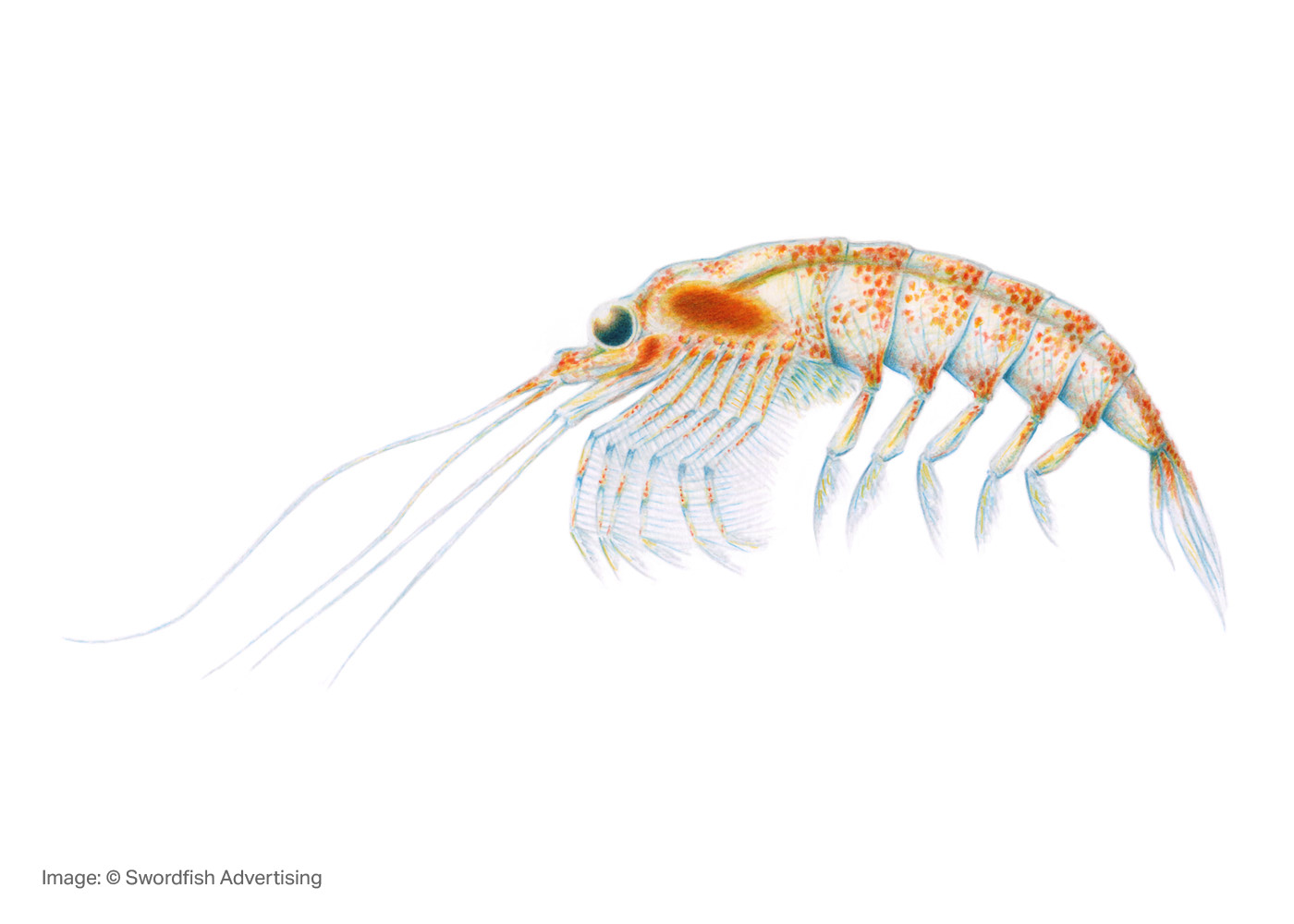 Illustration of a krill commissioned by Swordfish Advertising in 2019 to be used in a campaign for special dog food.